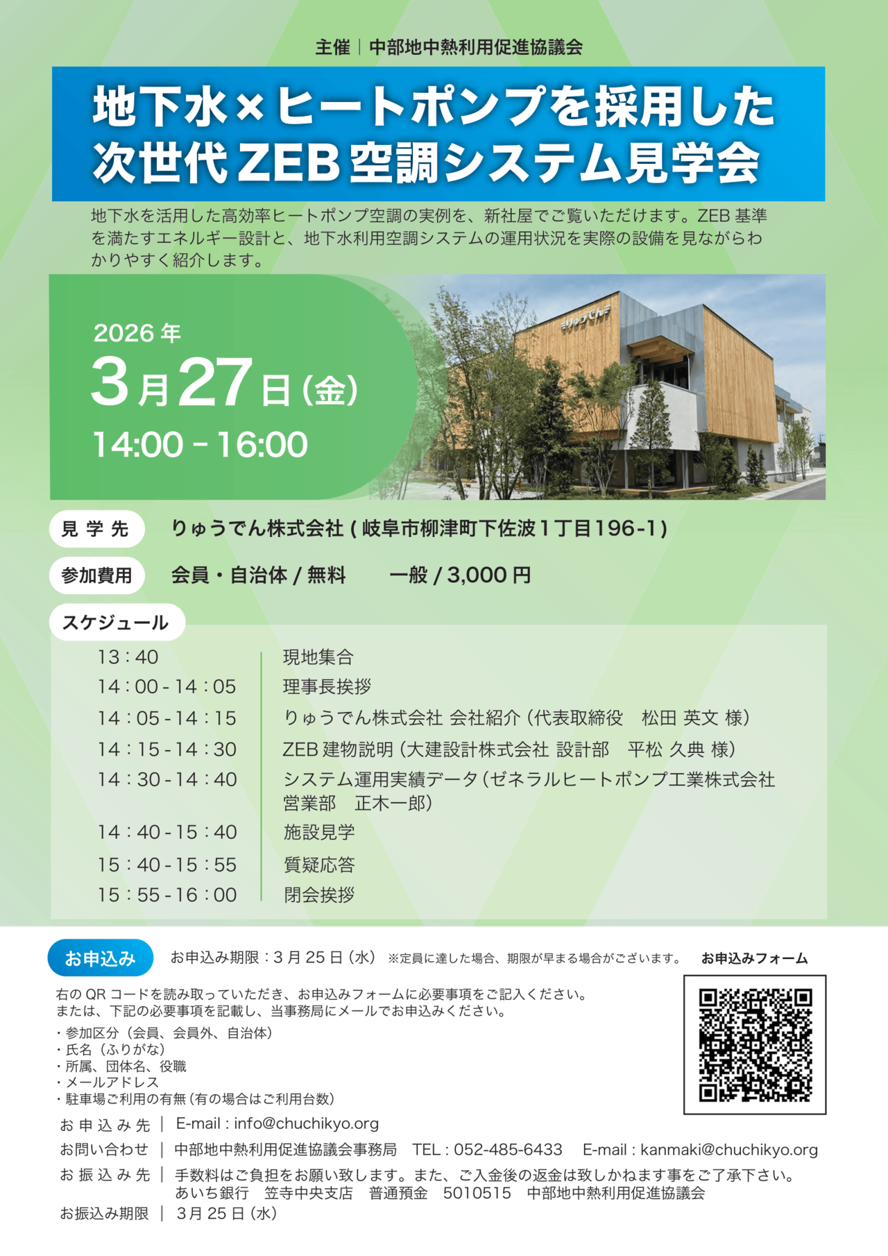 この度、ZEB認証及び第57回中部建築賞を受賞されたりゅうでん株式会社様の新社屋の見学会セミナーを下記の通り開催いたします。